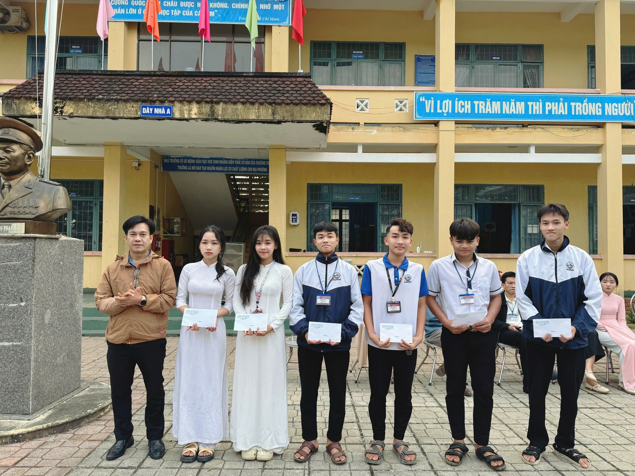Nhà trường đã khen thưởng các tập thể lớp đạt danh hiệu lớp tiên tiến. Xin chúc mừng các tập thể lớp 12A2, 12A3, 12A1, 11A1,12A5 và 12A2.