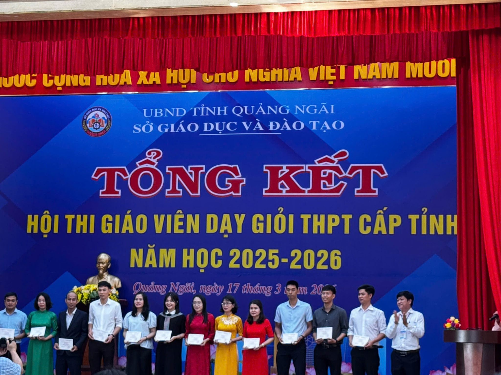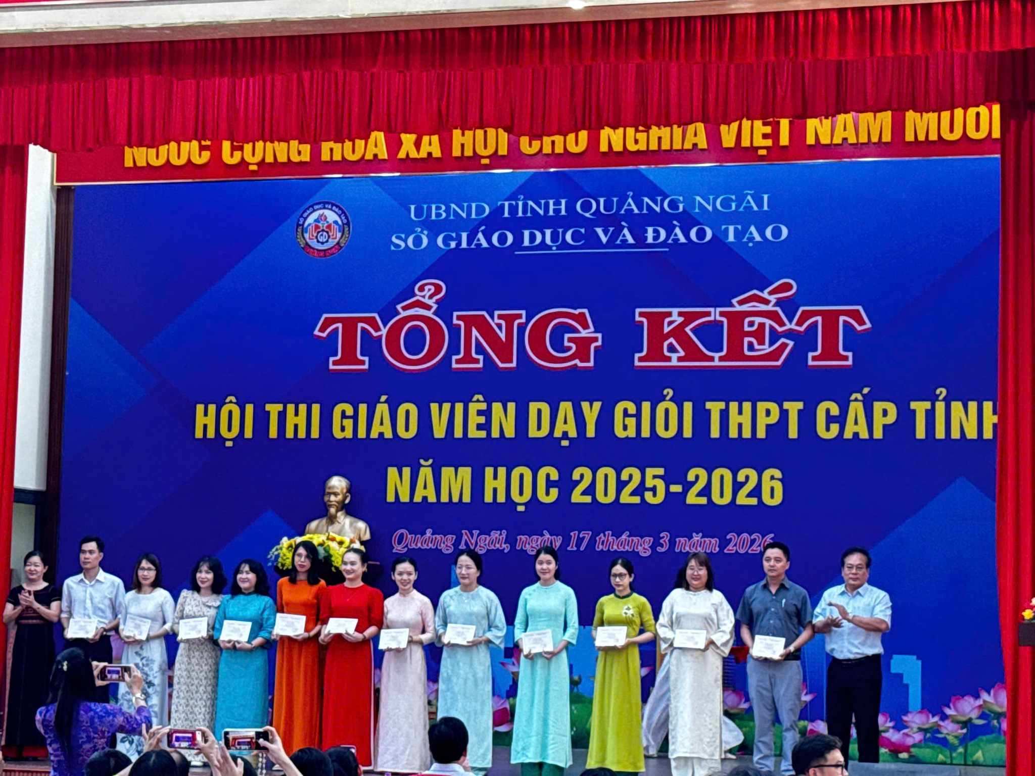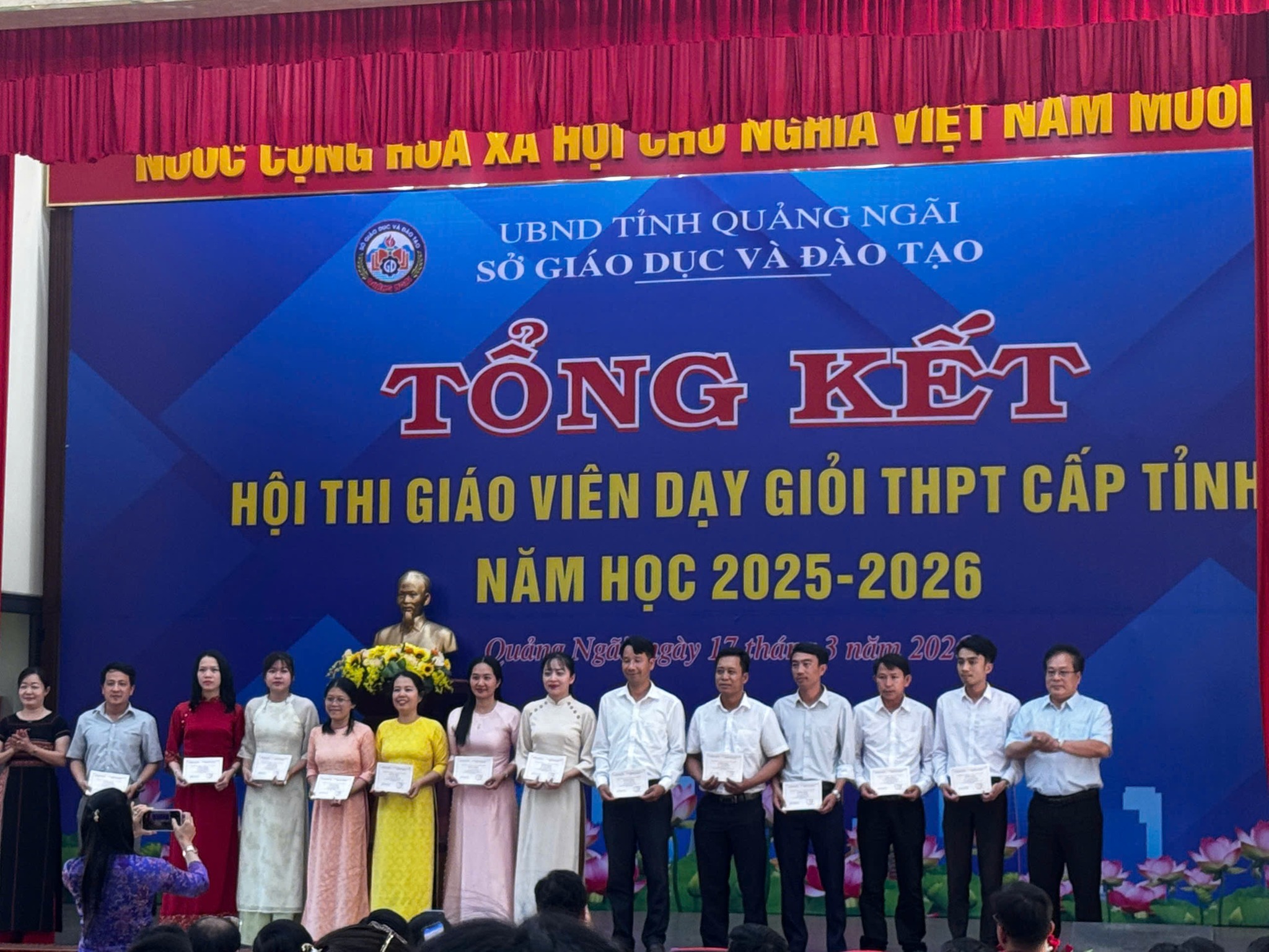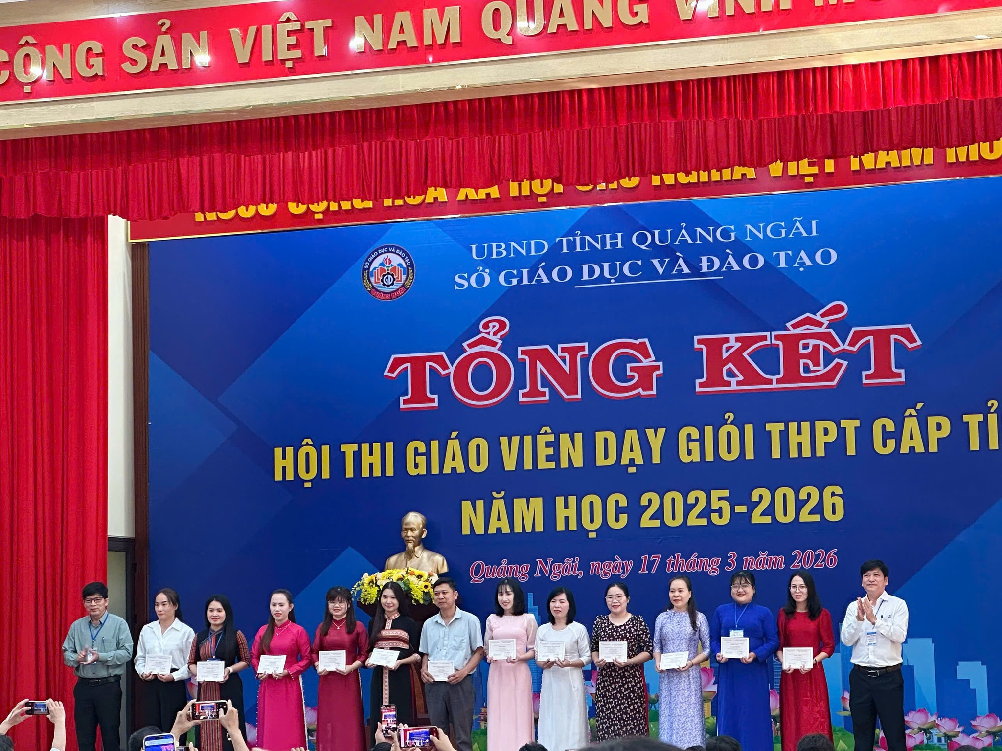 Sáng nay, Ngày 17/3/2026 Sở Giáo dục và đào tạo Quảng Ngãi tổ chức Lễ Tổng kết Hội thi Giáo viên dạy giỏi Trung học phổ thông cấp tỉnh năm học 2025 – 2026. Trường THPT Phạm Kiệt có 09 Thầy, Cô giáo đăng ký dự thi và xuất sắc đạt giải.