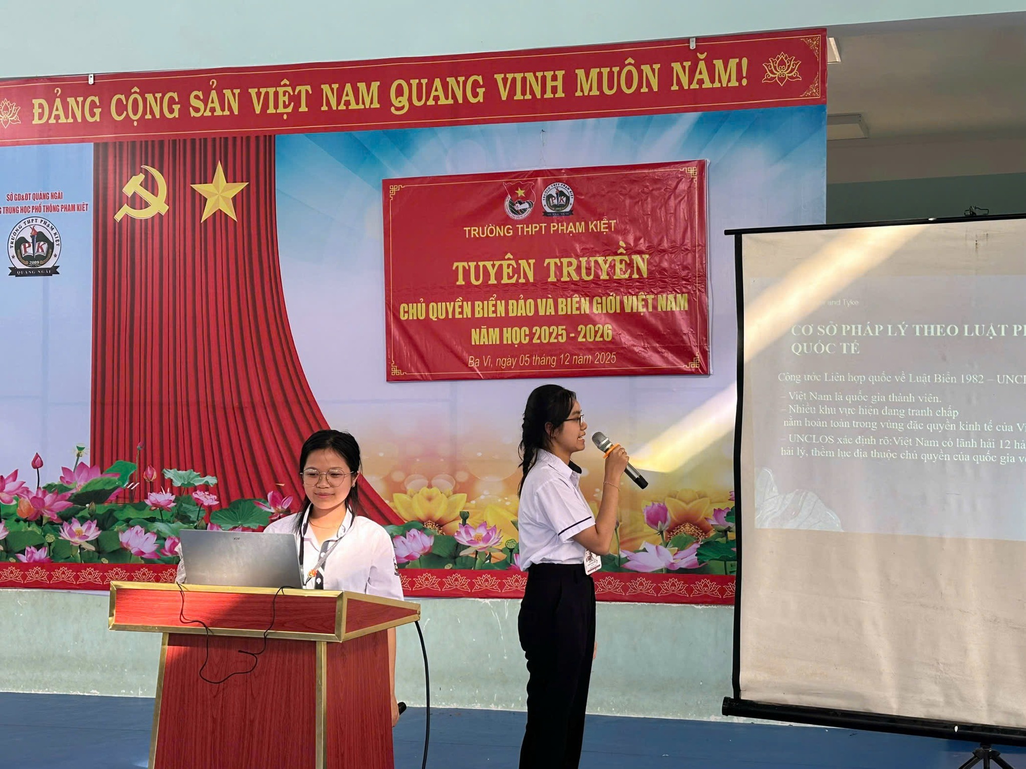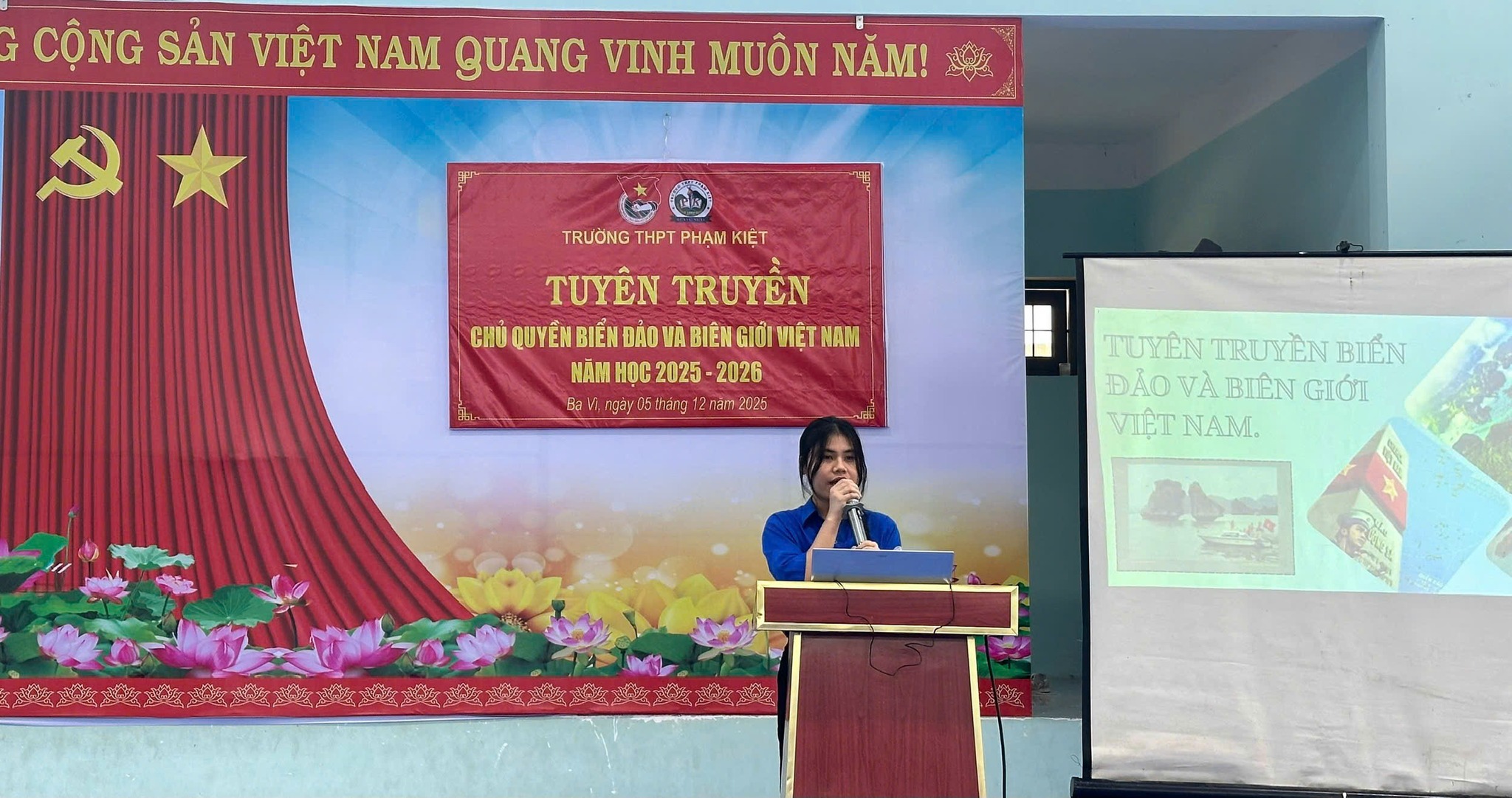 Đoàn trường THPT Phạm Kiệt đã phối hợp với Tổ Tổng hợp xã hội tổ chức buổi tuyên truyền về chủ quyền biển đảo và biên giới Việt Nam với sự tham gia đông đủ của đoàn viên, thanh niên và giáo viên toàn trường. Buổi sinh hoạt đã giúp các bạn học sinh hiểu rõ hơn về vị trí chiến lược của biển đảo, hệ thống biên giới quốc gia và những bằng chứng lịch sử – pháp lý khẳng định chủ quyền thiêng liêng của Tổ quốc.